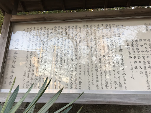Read more参道の途中から入る道から入った。 敷地の広さに「スゲー」と恐れおののく。 参道がスゴイ長い! 神社巡りを趣味として「横浜 パワースポット」などランキングで出てくるが、この神社は名前がのってない。 こっ、これは穴場を発見したかもしれん! と、一人テンションが上がる。 登り階段なんかも長くて「いいねっ! スゴイ神社感あるね。」なんて思う。 はてさて、本殿まで来た・・・ガーン! 本殿の前に並ぶ3台の車! 景観が悪い! 参道があんなに広くて長いんだから、そこに駐車場を作って駐めればいいのに、なんで景観を損なう本殿の前なんだ! また、末社もたくさんあって、古くからの神社の感がある。しかし、裏に両開きの門があり、末社の愛宕神社が開いた門の扉に隠れてしまう。これにもガーン! 敷地がこれだけ広いんだから、末社をいくつか本殿の右側か、長い参道に移せば、本殿も末社もゆったりとお参りできるのでは?(2024年2月9日時点。) 裏門の外側に説明看板アリ。 疫病が流行った時に、浜に長い白ひげの老人が現れて「一ノ宮社の神である。神社が荒れ過ぎとる。神社をちゃんと祀れ!」と怒る。村人達が神社をキレイにすると疫病が治まった。 本殿前の車の駐車、末社の状態、そろそろ、長い白ひげの老...