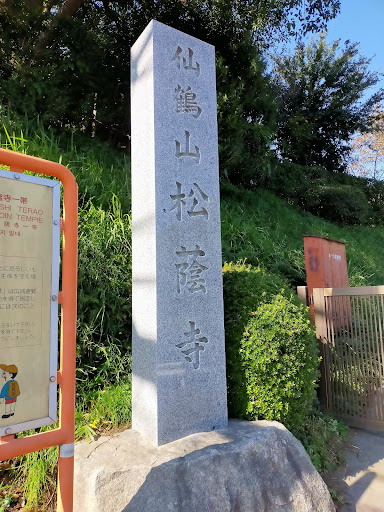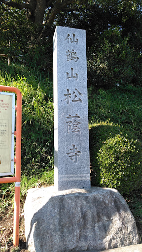 仙鶴山松蔭寺(せんかくさん_しょういんじ)は臨済宗建長寺派の草庵として建武元年(1334年)開創され、寺号は正統庵とした。由来は鎌倉建長寺の第三十世佛壽禅師退隠の後、幽棲の地(いわゆる隠居)として庵を結んだものです。文和3年(1354年)2月18日示寂(逝去)との記述がされています。***西暦では3月13日です*** 寺号は当初「松音寺」と書していましたが後に今の「松蔭寺」に改まりました。本堂は14mに11mの大きさで南向き。本尊は釈迦牟尼(しゃかむに)立像で高さは約70cmを安置。古器宝物は多くを数度の回祿(火災)で失ったとの言い伝え。東側にあった本堂を現在地に移したとされています。徳川時代の境内は4000㎡弱で後背の山林は3.3haとなっていました。大正12年9月1日の関東大震災で本堂が大破となり川上誠宗住職が修復復興に向けて尽力されました。 通常、山門は閉じられていますからもう一つの入口から入ります。境内には鐘楼がありますが、鐘を撞く機会はほとんどなく、略式で1回撞きになっています。重低音に対する機微が影響しているのでしょう。奥に進みますと庫裡(くり)前に「布袋尊像(本堂内にも祀れています)」があり、山門側には「慈母観音立像」と「水子地蔵尊」、本堂は木鼻が阿吽の獅子の他、蟇股(かえるまた)の部分には鳥の彫刻が見事です。本堂前庭園を通り奥に進むと観音様・庚申塔に達します。となりに祠があり、左には「里見義高公」を祀った「義堯入道尊堂」と観音堂があります。左右には阿吽(あうん)の仁王木像が立ちます。仁王像の足もとには小石が置かれていますが、これは駒形明神の言い伝えである「小児疱瘡(ほうそう)の類い他、何れの病にても悩める者はここに祈れば必験あり」と伝わり、「祈願する者は側石を取り、悩む所を撫でると自ら平癒(治る)せり。平癒の後は石を二つ納めよ。」つまり、小石をひとつ借りて撫で、結果が出たら石は二つにして返す事になります。里見入道の霊験あらたかという事で現在は松蔭寺の義堯入道尊堂に小石が置かれるようになったものです。明治20年に現在の駒形天満宮より当地に移されたと生見尾村誌に記述されています。 観音堂は駒形天満宮の「慈眼堂」を移したもので十一面観音(高さ30cmほど)立像が安置とされる。真言は「オンマカキャロニキャソワカ」等です。病にかからない、災害・事故・犯罪にあわない、食べ物に困らない、財産運などの御利益があるとされています。 更に奥の位置に東司(とうす:トイレ)があり、中は洋式便器や小便器が備わっています。また、閉鎖された松蔭寺幼稚園がそのまま残っています。