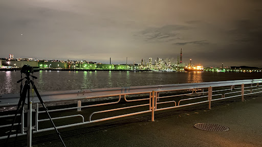 人気の釣りスポットだけど向かいの工場夜景がとてもキレイ。 ただネット上での画像はだいたいがズームして撮っている物なので、初めて行った時の最初の感想は工場夜景小っさ!だった(笑) 基本路駐することになるので、あまり自由に動けない。 パトカーは素通りで駐車の...