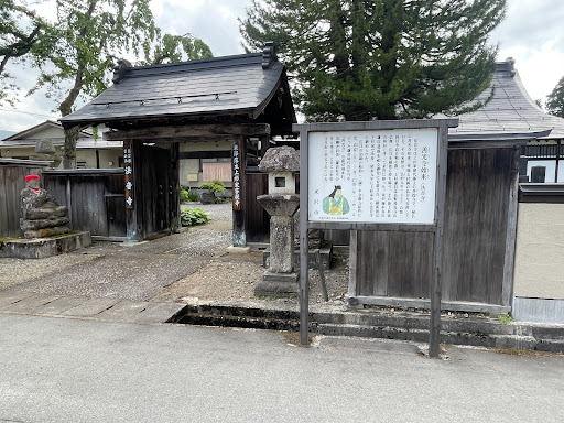 It is the family temple of the Uesugi family and is located in front of the Uesugi family mausoleum. When I was in the middle of looking at the materials, the administrator called out to me and showed me the inside. It looked like the entrance of a normal house, and I didn't feel like I could go inside.