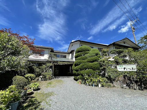 We arrived from Beppu at about 5pm via bus and walked for about 10min from the bus station (which is close to the train station.) It is located next to a stream by a narrow road, and we were greeted by the senior proprietress. She spoke to us in Japanese which we understood a few words and wiped our luggage before bringing it in, then showed us the onsen and our room. Room was a decent size w 3 futons for our family of 2 adults, a 5yo and 8 yo. The room is dated but clean, we walked out to the main road with umbrellas loaned from the ryokan, and found a ramen store next to the supermarket, had our dinner and picked up a few items before heading back to the ryokan. Onsen was pleasant with an outdoor and indoor section. 2 small towels were provided in the room, some yuzu biscuits, a big flask of hot water and green tea. We enjoyed simple breakfast items bought from a convenience store nearby. Check out is 10am and payment in cash (credit cards not accepted). Wifi is provided and was somehow not working for us but not an issue as we had our own connection. We stored our luggages with them after check out and explored the town before catching our scenic train ride to...