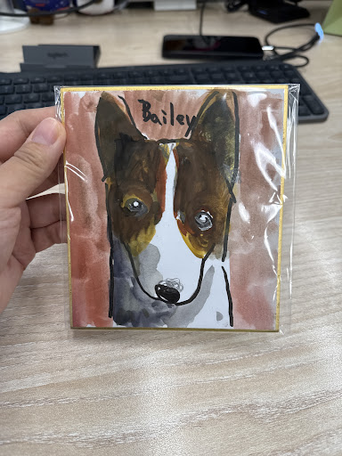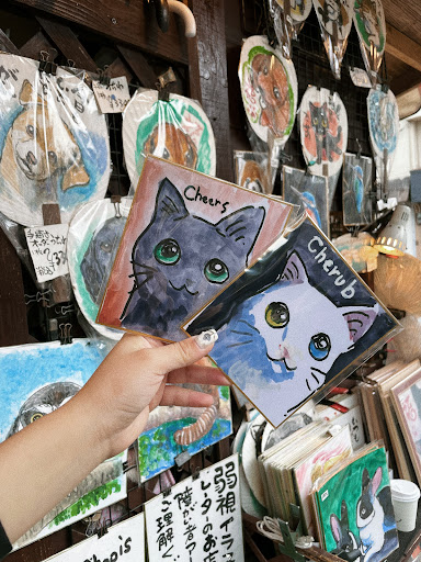 Read more剛好經過這間店發現可以客製寵物的繪畫 老闆是弱視並且領有殘疾證明 但是待人客氣 非常的有活力 他幾乎都在低頭畫畫 可以先跟他打聲招呼 如果要請他客製寵物繪畫可以先選擇尺寸 他會給你名片請你將照片寄到名片上的信箱 信件名稱是寵物名稱以及眼睛的顏色 老闆會現場看信箱收到的照片跟你確認細節 例如寵物的毛色 長毛或短毛等等 可以用簡單的英文溝通 還可以選擇要卡通風格還是寫實風格 我這次選擇小尺寸卡通風格 約4400日圓 大概畫 40 分鐘到 1 小時就可以取件 老闆非常有禮貌 我很喜歡這種客製手繪 不是完美的畫 但很有溫度的畫作