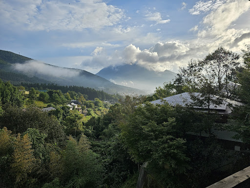 ย ย ย Read moreA traditional Ryoken run in a very traditional and correct manner by what I presume to be a husband and wife team. Individual chalets incorporating private bathhouses are set along the contour line of a hill over looking the Yufu valley and directly towards Mounts Yufu and Eboshi. The chalets are split level, with toilet, living/sleeping areas on the upper entrance level, and the bathhouse on the lower floor. The upper floor and lower floors have a panoramic view across the valley and mountain side. Everything is โjust soโ and very clean. The small Ryoken complex has a central restaurant, serving a multi course traditional Japanese evening meal, which is beautifully presented, and an equally beautiful Japanese breakfast in the morning, both at set mealtimes. Unfortunately we had only one day at the this hilltop location, but this would be a great base for some hillwaking, with the prospect of a hot bath in the evening. One oddity was the arrangement of a toilet on the upper floor, but no handbasin, meaning that hand-washing, and tea service washing, required a trip downstairs to the bathhouse. All...