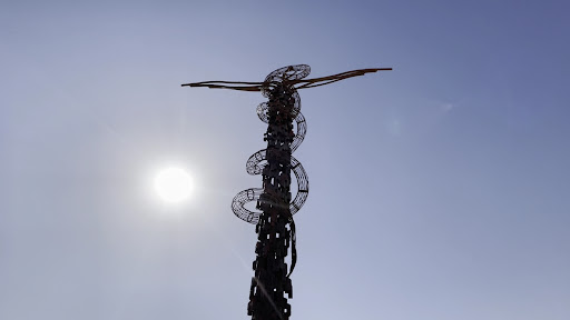 A probable replica of Brazen Serpent created by Giovanni Fantoni atop Mount Nebo, symbolic of bronze serpent created by Moses in the wilderness. In the biblical story, following their Exodus from Egypt, the Israelites set out from Mount Hor, where Aaron was buried, to go to the Red Sea. However they had to detour around the land of Edom (Numbers 20:21, 25).