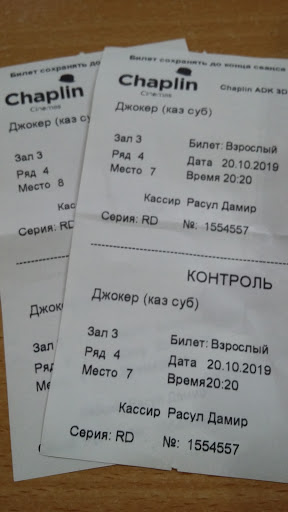 Доброе время суток. Решили всей семьёй посмотреть новый мультфильм "Камуфляж и шпионаж". По времени, успевали в Chaplin АДК. Ещё и в 3D, подумали это классно! В реальности всё получилось наоборот, к сожалению. Билеты купили заранее- онлайн. Дети хотели разливную Coca-Cola, но аппарат не работал. Залов много, около десяти- это хорошо. Но ни на билетах, ни на табло расписания - не указаны номера залов. 3D очки в плачевном состоянии: стёкла затёрные, грязные, заляпанные чем-то. И к 3D очкам выдают обычные бумажные салфетки (сухие), которые не справляются с загрязнениями. Мы были в третьем зале. Свет потушили, на экране давно закончилась реклама, уже шёл полным ходом мультфильм, наверное двадцать минут, и всё это время дверь была открыта, шторки тоже были на распашку. Свет из открытой двери мешал просмотру, потому что светил в нам в лицо. Контролёру, стоящему у двери, по-моему, было всё равно. Из-за грязных, старых 3D очков было сложно рассмотреть все 3D эффекты. Я расстроен. Дома перед телевизором, я бы от просмотра этого мультфильма в 3D получил бы больше положительных эмоций. Чем в Chaplin ADK. И ещё, в кабинках (в двух из трёх) мужской уборной нет крючков-вешалок, мелочь, но не приятно. Думаю, кино смотреть я сюда не приду. Ноль звёзд. Ставлю одну чтобы...