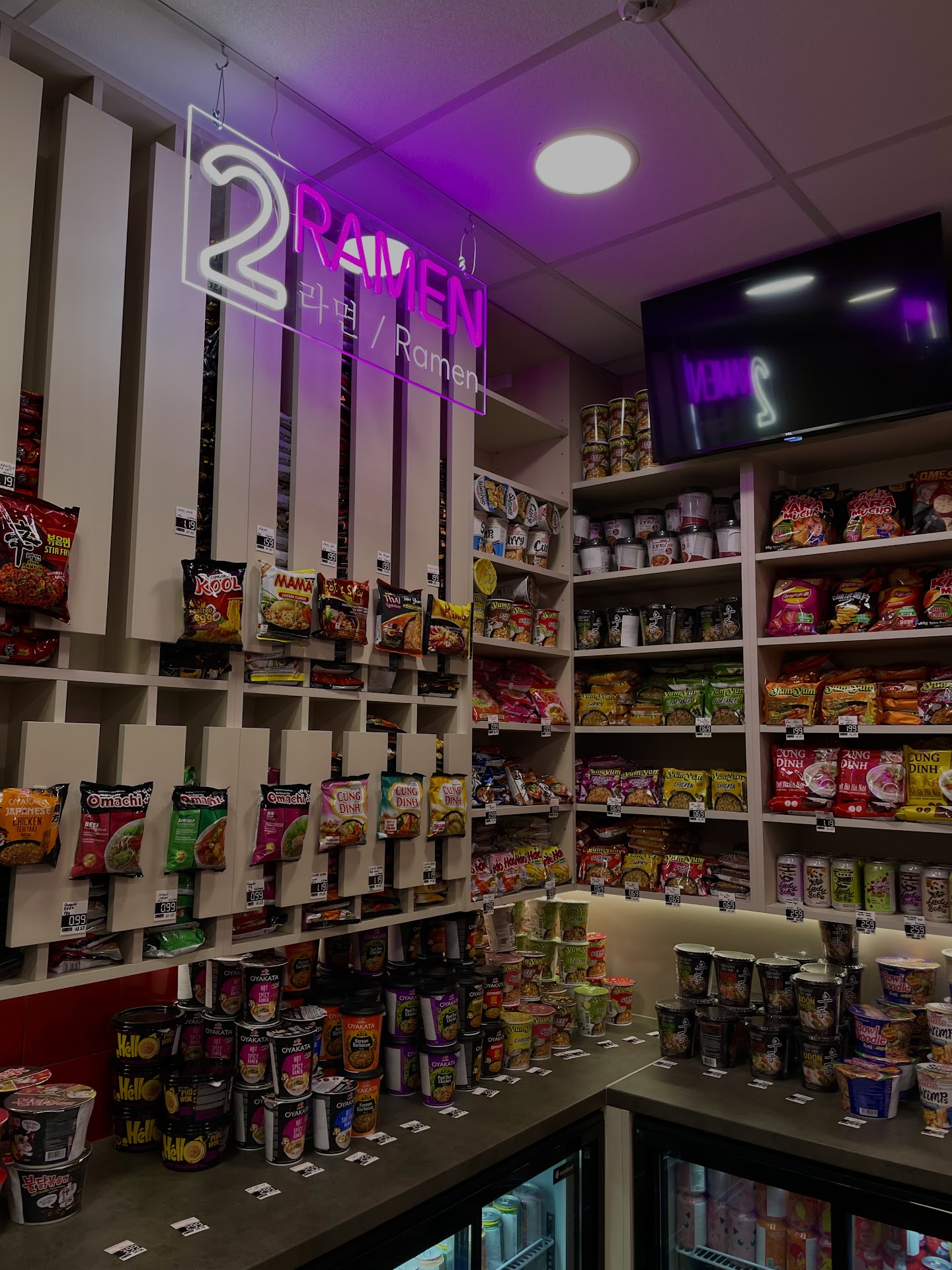 Read moreЧасто прохожу мимо этого заведения после работы, в один из таких вечеров решили зайти с молодым человеком, перекусить. Я большая фанатка лапши, люблю готовить сама дома, за просмотром дорам🙈 Для меня действительно было большой радостью, когда открылся этот магазинчик-закусочная, так еще и на круглосуточной основе! Очень обширный выбор лапши и допингов, в ассортименте были так же не острые позиции, что очень обрадовало, так как зачастую такая лапша острая. Достаточно приятные цены, можно выбрать любые допинги к лапше - от мяса и сосисок, до сыров, зелени и даже маринованных яиц. 🍜 Моя лапша с большим количеством добавок к ней и напитком обошлась мне в 10€, молодой человек взял себе по скромнее и без напитка, заплатив около 5€. Есть возможность взять собой, но мне конечно было интересно поесть именно там, на месте. Оплата только картой, через кассу самообслуживания. На первом этаже находится магазин, а на втором зона со столиками и аппаратами для заваривания лапши. Над аппаратами сверху висит инструкция по приготовлению, так что ошибиться сложно 😅 Было очень вкусно, гораздо вкуснее , быстрее и атмосфернее, чем готовить дома! Если вы такой же любитель лапши и азиатской культуры, ищите где бы быстро перекусить или скоротать вечер в компании друзей - однозначно...