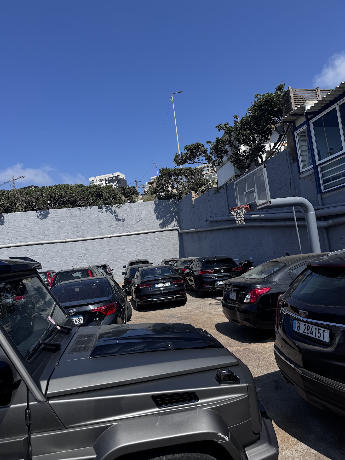 Upon arriving, we did find a basketball court, which seemed promising — but we quickly noticed that cars were parking in the court area. After walking around for 20–30 minutes, it became clear that this same space was being used for basketball, tennis, racquetball — and parking — all in one.