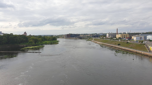 M. K. Čiurlionis Bridge is a bridge in Kaunas, Lithuania. It crosses the Nemunas River to connect Freda and Kaunas City center. The bridge is 475 meters in length and 29.4 meters in width. It carries six lanes of automobile traffic, with three lanes in each direction.