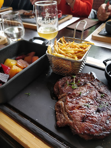 Read moreThe restaurant location is great, just outside the old town. A walking distance if you are visiting and staying in the Vilnius city centre or thereabouts. The décor is done tastefully, to make you feel welcome and relaxed. As for food, we’ve had mixed experience :) We had beef tongue and foie gras, to start with. Both were served on a strange stale tasting over-toasted slice of brioche, a very poor choice for both. Pity. Tongue and foie gras were ok, but what really stood out was the wasabi “ice cream” that came with the tongue. Despite the pretentious labelling as “ice cream”, the flavour was amazing and it went very well with it. The showstopper were the steaks. The beef was carefully sourced from Uruguay, matured to different levels and priced accordingly. They were cooked and seasoned almost to perfection. Almost, as we felt the chef went a bit too heavy handed on the salt. The sauce which the steaks came with was full of flavour, but again, over salted. My wife asked for the garlic butter but she did not get it, it was not even on the menu…strange. I loved the grilled vegetables, to offset the saltiness. For desert, we’ve had crème brûlée, Japanese cheesecake and chocolate fondant: my son enjoyed crème brûlée cheesecake was awful, bland textureless mess fondant was super tasty, passed the oozing chocolate lava test ;-) Service was very good by a professional experienced waiter. If we had only steaks with less salt, it would be 5 stars. And finally, with a decent bottle of Italian wine, we (a family of 3) spent almost 200 eur. Ok if the total experience was flawless....