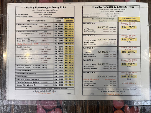 During my solo wanderings in Kota Kinabalu, I stumbled upon 1Healthy Reflexology, a massage parlour that caught my attention. As I had some free time while waiting for my wife to finish her work, I decided to indulge in a relaxing massage session.
