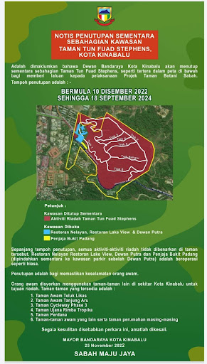 I hope DBKK can provides more info about the botanical garden. Because the upgrading project will take almost 2 years, DBKK should limit the impact on disenfranchised Sabah people who have been working out in Taman Tun Fuad Stephens every day.