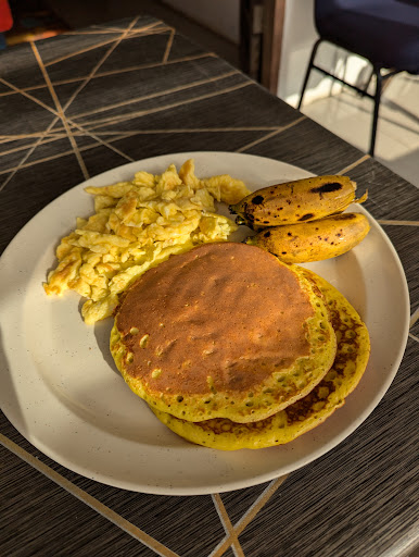 Breakfast is at request. The pancakes were quite good. Nice and fluffy!