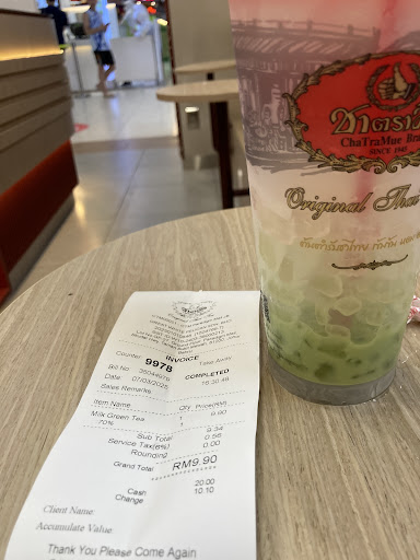 I ordered a hot thai milk tea to go. I was given my tea in a takeaway cup with a tissue. I asked for a carrier as I was carrying a baby on me. The lady said they did not have any even when i explained I was afraid of burning my baby. She just stood there staring back at me. I left and went back again, to see if they have a plastic they could put over the cup, whatever minimal i could get. This time round, another lady served me. She gave me a round paper to seal around the cup, and a carrier to take away. Chatrumae is a proper brand of tea in Sg and Thailand. To be served in this manner by the first lady was confusing and disheartening. I hope nobody else gets their tea in such a sad state as I did. I am truly thankful for the second lady's help. Without her, I would have left the tea back in the shop. Thank you to this...
