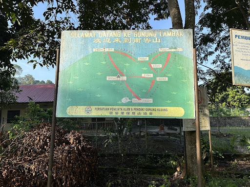 There's 2 route that you can take( not an expert here) , after walking straight you'll see a draw bridge , if you cross that you'll go up an easier path, if you don't take that and walk straight you'll have to climb up stairs . Than you'll meet at one part which a huge signboard which says gunung lambak. There you have again 2 options. The left route is faster but abit steep. There were ropes but I wasn't confident as it was raining so I tooth the right side which was longer but you'll be happy with the view. It took me 4 hours for a slow hike up and down, but alot of people I encountered said it took them 2 to 3 hours .