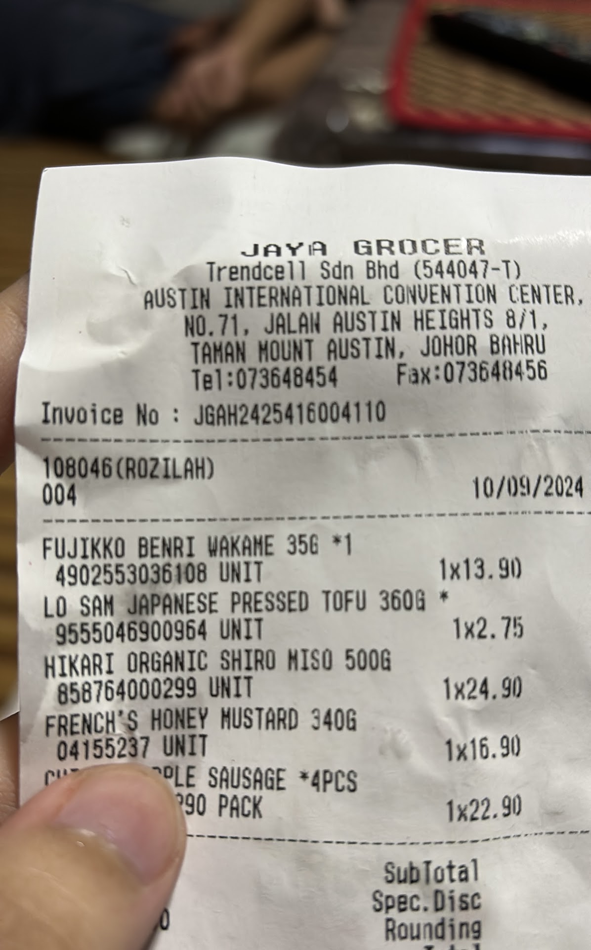 This is my first time shopping at Jaya Grocer because it's a great place to find ingredients that aren't available in regular supermarkets. However, my experience with one particular cashier (name listed on the receipt as Rozilah) was extremely disappointing.