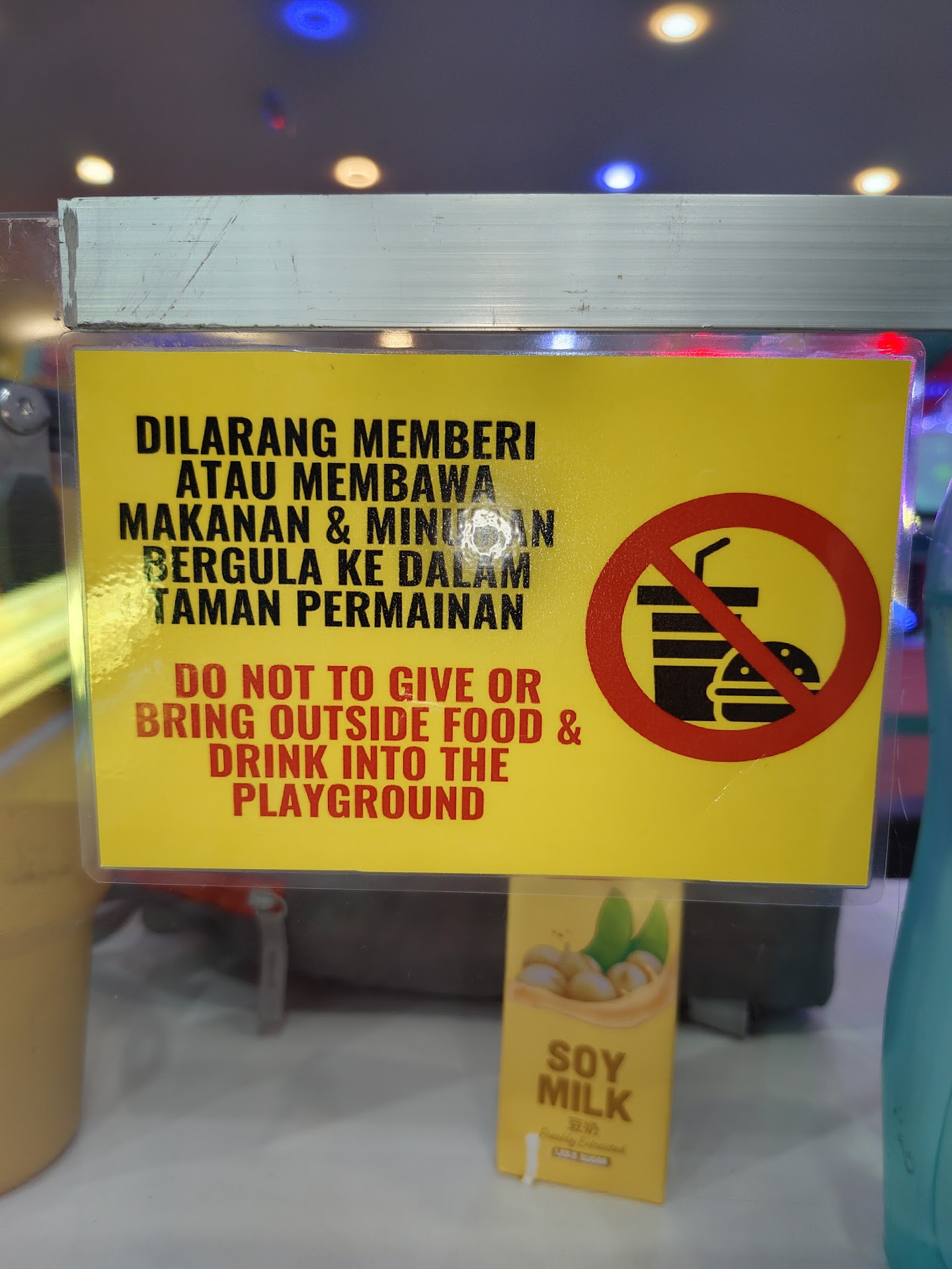Read moreI noticed that the signboard mentioned DO NOT give or bring outside food into the playground. Some parents blindly gave their children food or snacks from the partition. The children took food from the partition to eat and continued playing with unclean hands...makan waffle hands ada chocolate let the kids continue to play....aduuiii hello...this is a playground not PICNIC. Please be responsible for the cleanliness of public facilities and the health of...