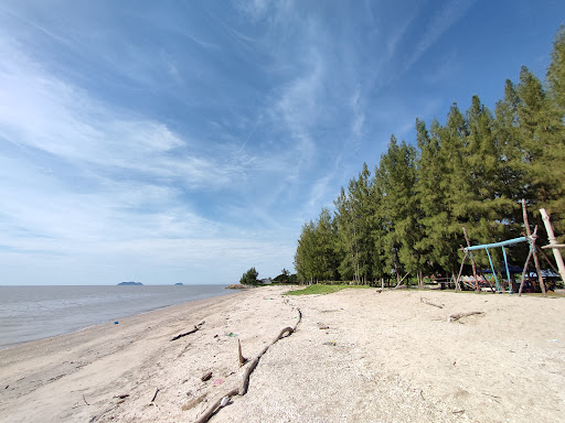The pine trees beach view is not bad but the problem is the beach is not well maintained(not sure it is a private property or public beach) and rubbish is everywhere (no rubbish bin provided). There are food stalls but mostly just sell fried food/snacks. Just hope the visitors not being 'easy' for throwing their rubbish everywhere and got somebody helps to manage the rubbish. Please be a responsible human towards nature...
