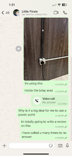To top it off, I tried calling the owner several times to clarify, but there was no response. This was the same person who had been responsive before but suddenly ignored me when I needed assistance.