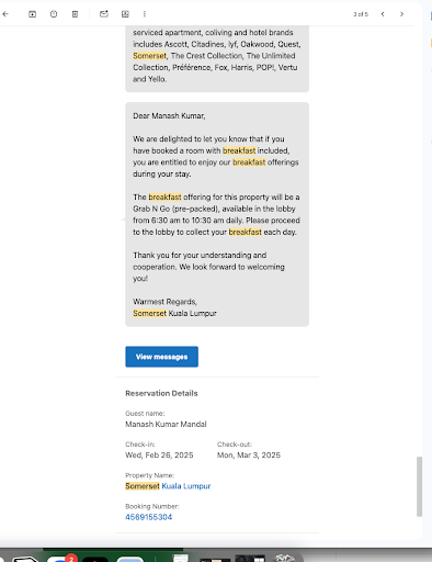I recently stayed at Somerset Kuala Lumpur from Feb 26 to Mar 3, 2025, and my experience was unfortunately very disappointing - particularly because of how I was treated over something as simple as breakfast.