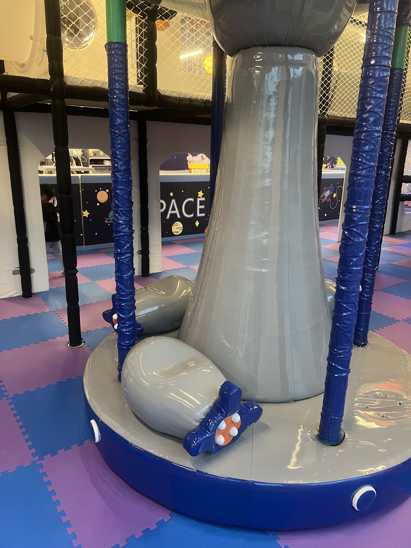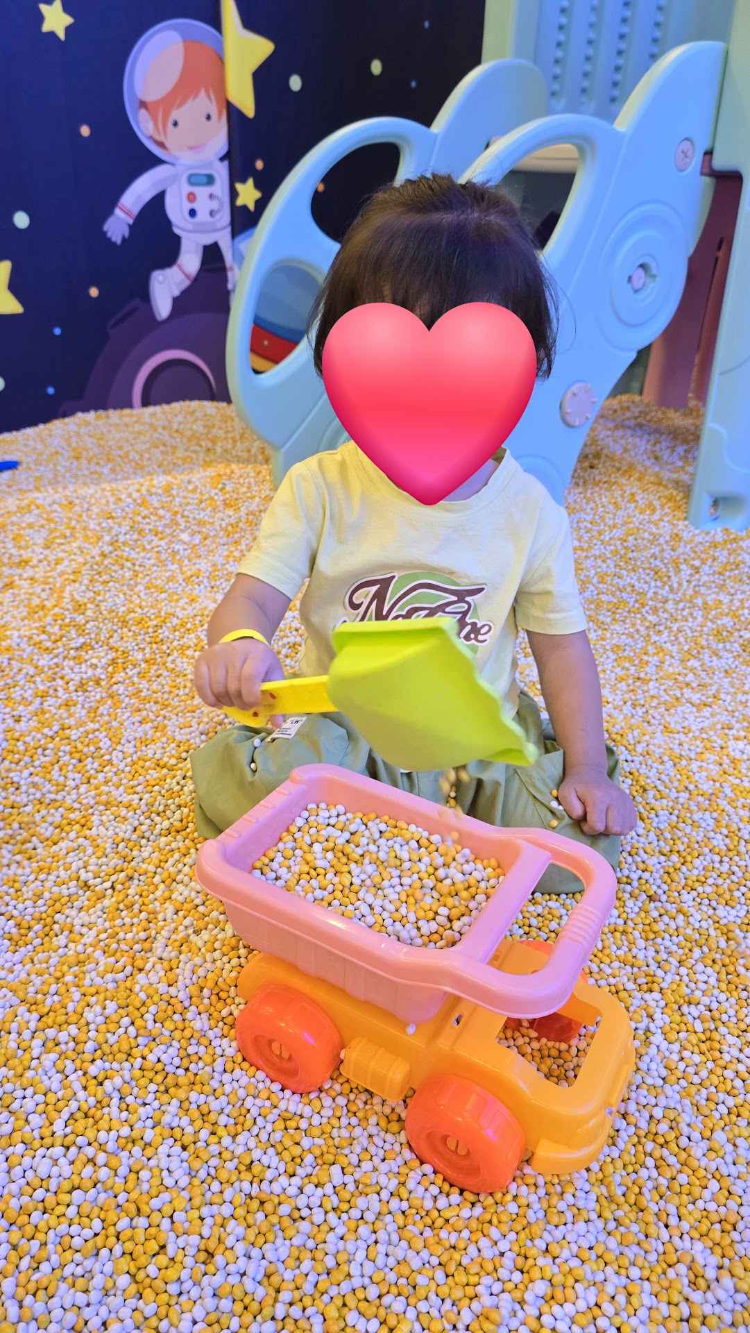 The play area is meticulously planned, featuring a range of fun zones such as a slide, a softball throwing area, a jumping zone, sandboxes, kinetic sand play, and even themed corners like the makeup area and space or princess costumes for photoshoots. While older kids might find the activities less engaging after an hour, for younger children, this is an ideal spot to play and explore.