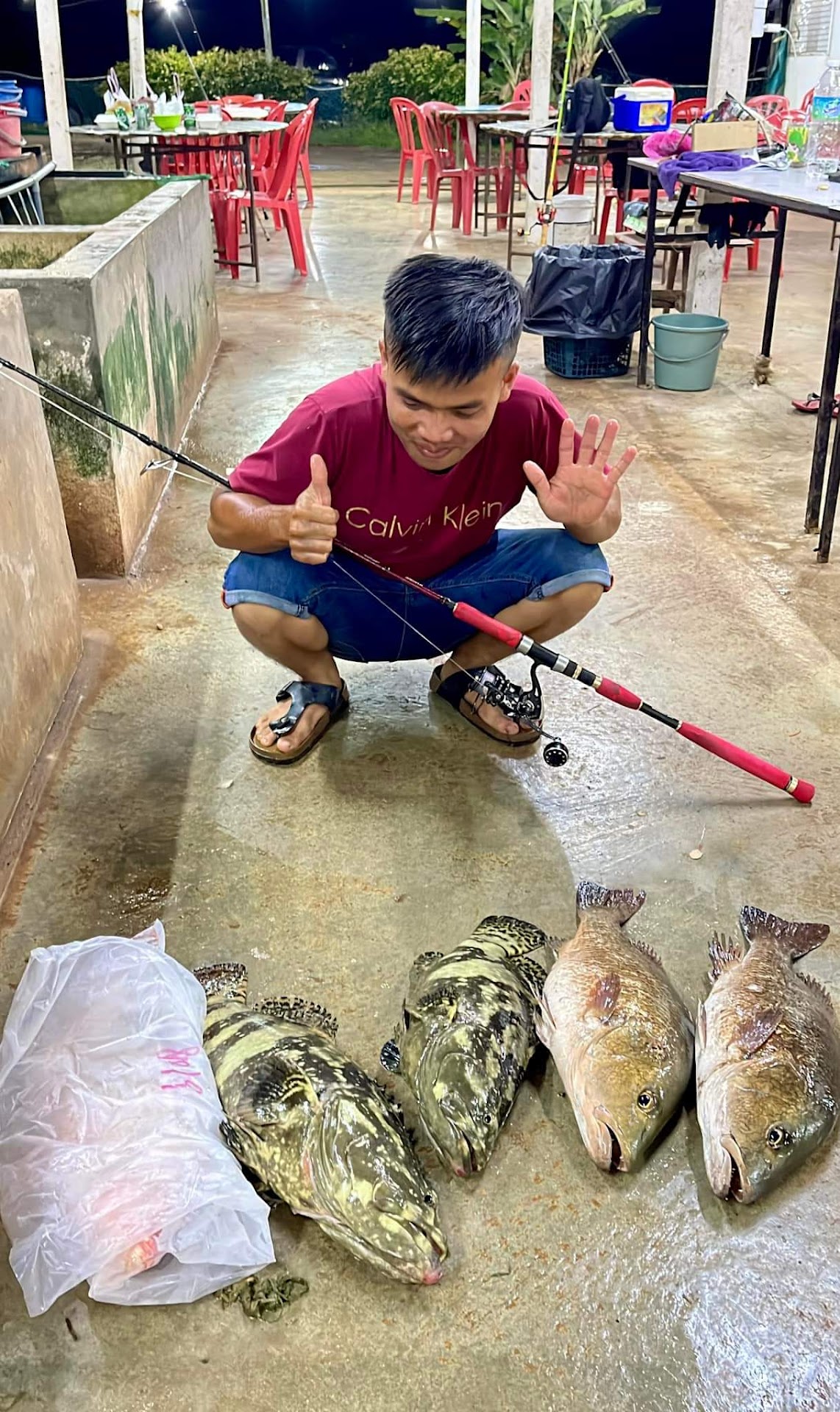 A mid size Sea Water Pond, the owner fill the pond using a canal from the sea hence its actual natural sea water hence the fish actually fight more aggressively when caught. They have a fish cleaning area & fish packing area both with tap. There is a toilet here also. The ground is harden orange stone & sand hence us kit sandy but some small spots can be muddy. The customers here don't cut the fish or bait and the packing area with tap, they cut at the fishing area hence it can be dirty. The chairs are dirty as well. Catch wise, here is good with big size fish hence the expensive price however it depends on luck as you may go home empty handed. There are some...
