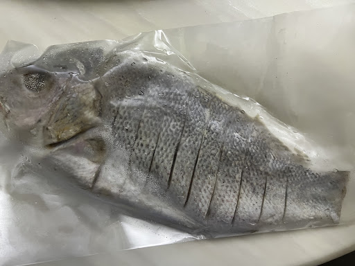 The owner informed me that while the salted fish I purchased has a grey colour and is wild-caught, it is superior and more expensive than the cheaper type, which is farm-raised and has a reddish top. He claimed that at the moment, there aren't many wild captured types.
