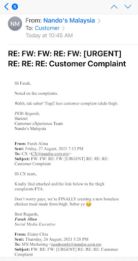 Clearly, Nandos is doing a great disservice to service industry in Malaysia. Shifting the loads to the customers while reaping maximum benefits.