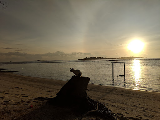 We had five nights on this sweet little island. It’s fair to say we just about enjoyed ourselves. On the whole we were saved by two trips to the boat bar and sand bank,$30 each. The sand bank at sunset is exceptional. If you can keep the plastic waste to the back of your mind as it’s becoming more and more frequent. You can get a trip there from the bikini beach area, there’s a little hut. There are snorkelling and Ray trips available of course along with fishing trips but after that your a little bit stuck. It’s not all that geared up for tourists but the few westerners that have set up guest houses and restaurants make it pleasurable enough. There is a lot of community feel about the place in this small charming Maldivian town. But it’s not geared up for tourists yet. The bikini beach is very small and you do feel like a sardine at times and makes you feel a little trapped. The fact that there’s nothing to take the edge off at the end of the day or wallow a little in the holiday vibe is a big problem (for me) no alcohol really does put a fly in the ointment. But that’s easily rectified with a trip to the boat bar IF YOU CAN FIND four people to share the boat otherwise they won’t go, and you’ll have to pay the difference. This is an example of how backward they are when it comes to tourism, or the little things. The shariah practice is brilliant, it’s wonderful to hear the call to prayer and the very tranquil respect the religion receives from tourists.