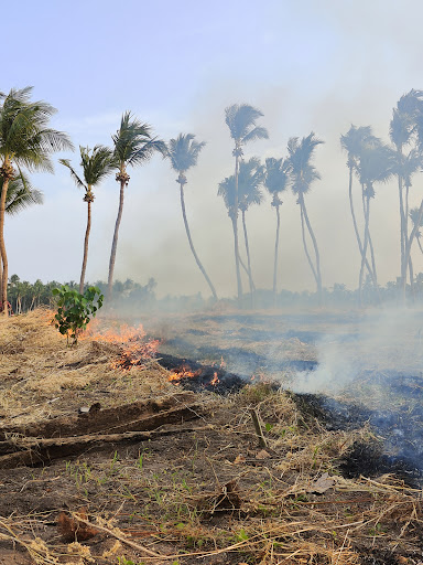I have noticed that local farmers burn grass, branches and any organic debris in fires to clean their fields before they sow new crops. During our 14-day stay on Thoddoo, the burning of grass and other organic debris was so frequent that many times the otherwise beautiful bikini beach was covered in thick and unpleasant smoke.