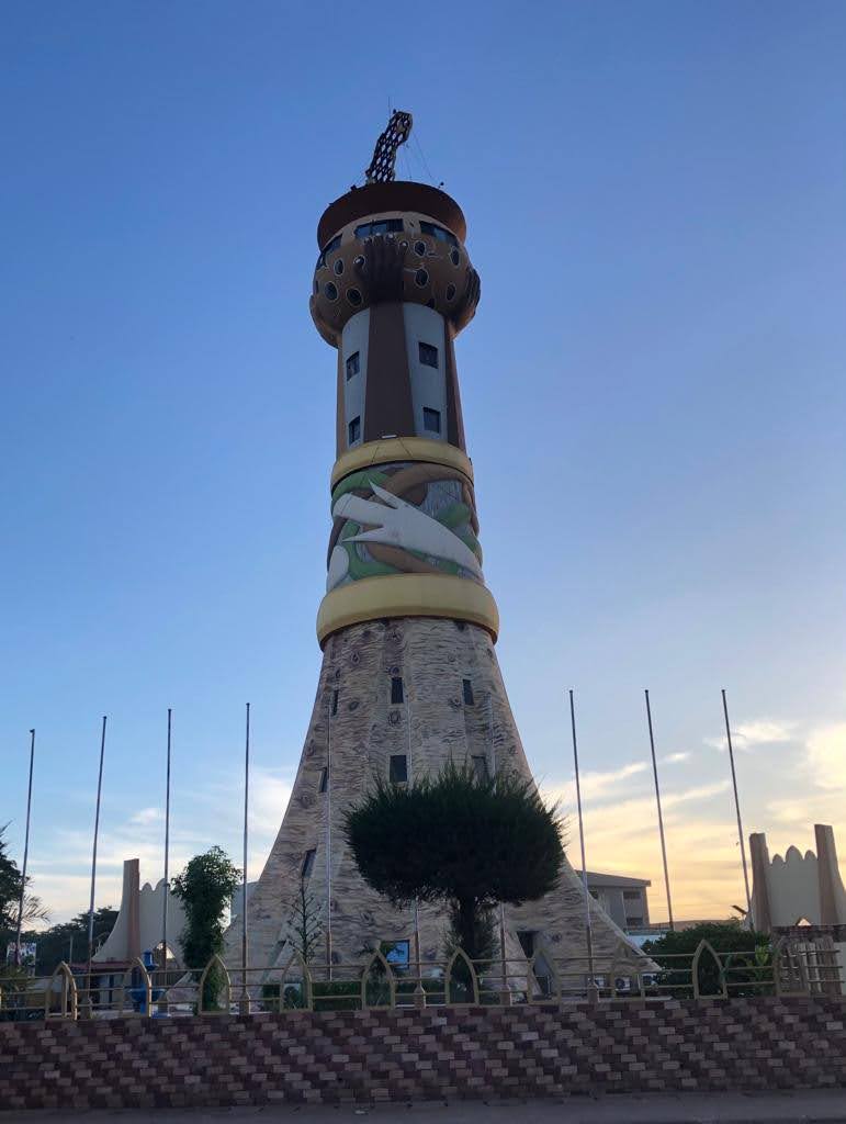 This is the most ancient tower of bamako named La tour d'Afrique (The Africa's tower). It is a blend of African-type elements in general and Malian in particular. This compilation is made by: - a baobab - a reservoir covered with ideograms (emblematic palaver tree under which the major decisions and resolutions of the city were taken) - two necklaces (to signify the party) - joined arms (for the uniqueness of the objective) - a pierced jar (that of King Guezo of Benin) - a sign bearing the image of Africa. (to signify the emergence of a strong and united Africa) The interior spaces of the Tower are accessible by an elevator and an emergency staircase. La Tour, véritable Tour de révolution est tronconique, haute de 46 m, de diamètre 22,10 m à la base et 5,40 m au sommet.