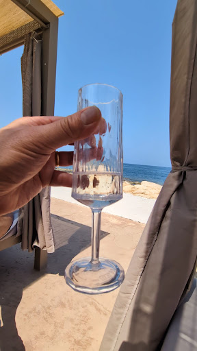 Read moreWe almost didn't go here due to poor ratings but I'm so glad we did. We rented a cabana that faced the ocean (€200 for the day for 2 people). We were able to redeem €100 of that €200 on food and drinks. For €100 we got a welcome prosecco with an ice lolly in it (so good!), 2 coffees, a large water, dips and bread, caesar salad with chicken, fries, club sandwich, 1 x cocktail, 1 x soft drink, a large fruit platter with lots of variety and 2 x ice creams. So was good value for money in my opinion for a beach club. The service was great, we just rang a call button when we wanted something and the servers came to take our order. Food came relatively quickly and service was friendly. We were on the cabana though (most expensive option), so I think they prioritise the service for them. Pool was lovely, DJ started from 4-6pm, nice chill vibes, not a party pool club. All in all we had an awesome, relaxing day with great food, service and comfort and we'd gladly...