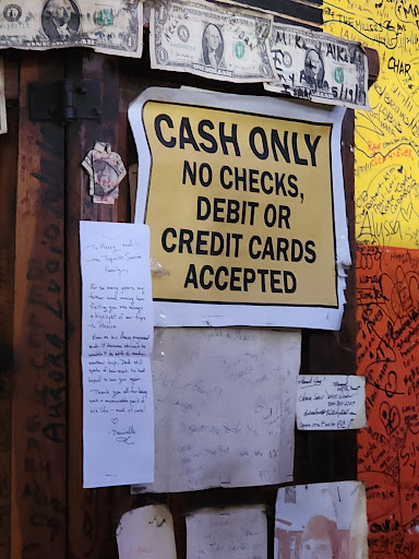 This is what can be called a Tourist Trap, well located in front of Hotel California . Cash only Bar, they have several signs all over the place to make sure you don't forget , also , illegally, their prices DO NOT Include Tax and the added on top of the bill, in Mexico ( Baja included) ALL PRICES IN RESTAURANT MUST REFLECT AND INCLUDE THE TAX ,not in this case they over charge 16%( Sixteen percent) and on top of that if you add tip( let's say another 15%,which in Mexico is customary, you end up with a 31%over the original price published in the menu, also they won't tell you what Tequila they are serving in a Margarita, except it's 100%Agave , if you choose to believe this , the 12usdlls Margarita it's generous . I would definitely avoid it next time in Todos Santos. It felt fishy. It's my opinion and experience. But you can try...