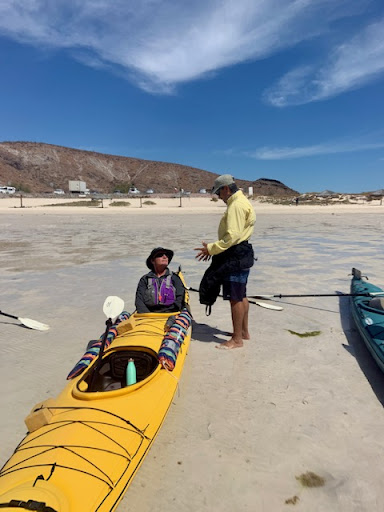 We spent three days at Camp Cecil de la Isla on Isla Espiritu Santo, which was the highlight of our trip. We boated all around the island and saw humpback whales, dolphins, and schools of feeding tuna. We snorkeled with a huge school of mobula rays, and spent time just cruising around the beautiful islands searching for animals and enjoying the natural beauty. We swam, snorkeled and kayaked around the beautiful bay right in front of the camp. The highlight for me was snorkeling with the sea lions and then scuba diving with them, where I had a sea lion playfully ‘bite’ my hand - no pain, just fun, like a giant friendly dog! Our camp mates were from Spain, Venezuela and Mexico so we had fun with the other guests in the evening. The food was absolutely amazing. We were shocked that such incredible gourmet food and drinks could be prepared right on the beach in the kitchen tent.