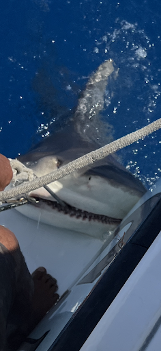 We had a great day of fishing with Captain Miguel and mates Eduardo and Filipe aboard the Showtime on February 8, 2024. The weather was not great that day due to very high winds. In fact, I had a second day of fishing scheduled with Kianah’s Sport Fishing earlier in the week on the 6th which had to be cancelled due to high winds closing the port. Not long after we reached the fishing grounds offshore and set the lines out we hooked into a sailfish. Unfortunately, the fish got off soon after but not before entertaining us with a couple of magnificent leaps out of the water while it tried to shake the hook. Despite a few more hookups that also got off I asked the crew to take us in closer to shore after a few hours of fishing in the very high winds. I really wanted to catch a Sailfish, a bucket list fish for me, but I had already been sea sick early in the day due to the windy conditions and my wife and children were struggling to cope with nausea as well so I wanted to get us out of the punishing winds into more calm water where my family could enjoy the experience without the sea sickness.