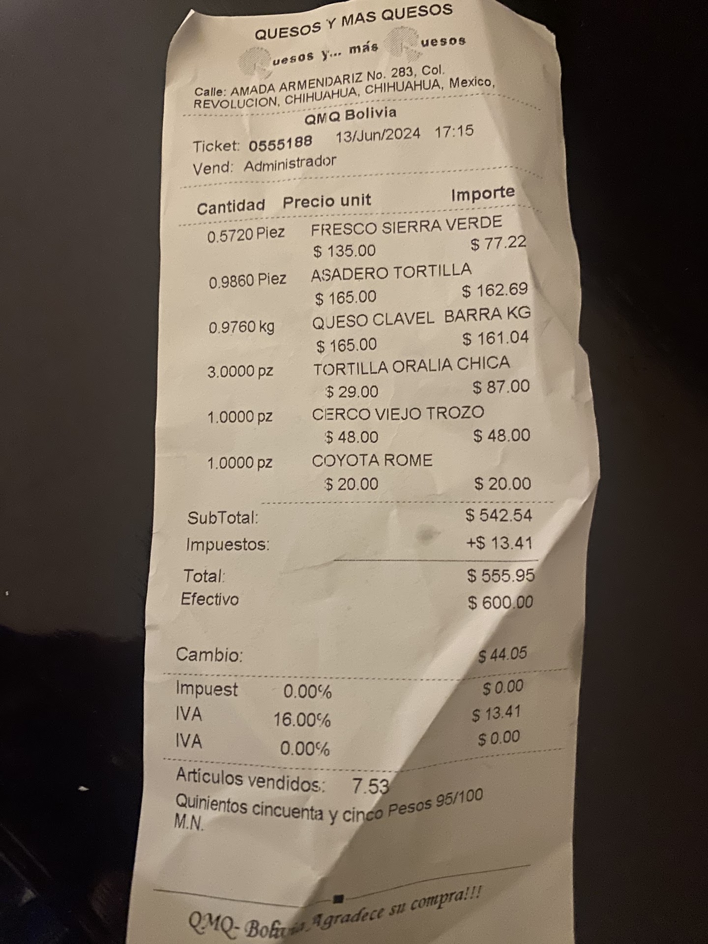 Hace 3 dias compré y no me pusieron un queso ranchero de kilo. En el momento no pude regresar porque ya iban a cerrar. Al dia siguiente, un amigo fue a comentarle y no aceptó. La persona que trabaja ahi dijo que alguien regresó un queso que le habian puesto accidentalmente, aun asi no aceptó. No es el dinero, es la falta de honestidad. Perdieron una exelente clienta. CUIDADO...
