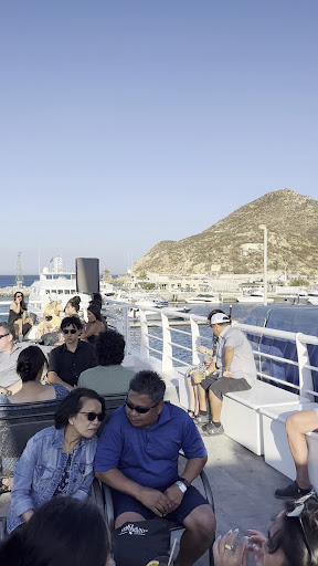 Read moreI decided to take this cruise last minute on my first day in Cabo. I was staying on the Marina, had been traveling all day and was hungry so all you can eat sold me. I'm not a big drinker, so that wasnt a deciding factor at all for me. I boarded the ship and went straight to the dining room. The tables were spaced out and the room had plenty of seats for all who where there at the time. I ordered a Pina Colada. It was a poor quality drink, I have to say. It wasn't good and I could taste whatever cleaner they used for the glass in the drink. It wouldnt have been good even without the cleaner taste. The food was just ok. The chips and salsa where good. I had beef tacos that were pretty decent, but nothing to write home about. They had some little desserts too that were ok. Nothing I had really stood out and the meal was just mediocre. I finished around the time that we first got to the arch and I went to the back of the boat for viewing and picture taking. It was all very beautiful and there were some sea lions playing in the water. We then headed on behind the arch to look at a remote beach, there were some whales spouting nearby and the sunset was beautiful. I went up to the roof where they had a live band (who was fantastic) and a waitress serving drinks from a rooftop bar. Some couples danced to the music and we viewed the arch again while slowly returning to the Marina after night had fallen and the beautiful lights of Cabo could be seen from the boat. All in all the quality of the food on the boat was not great, but the views paired with the music was beautiful and I'm...