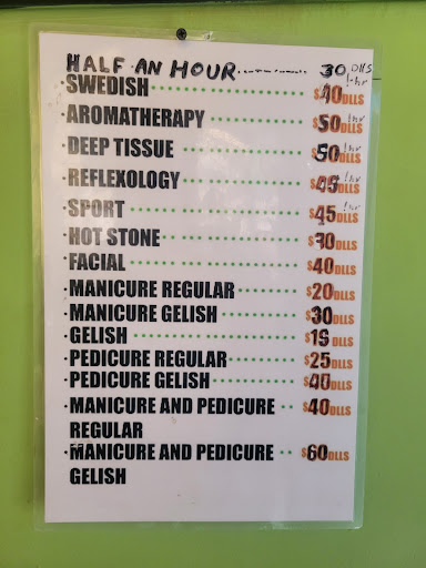 Read moreNO BUENO. We came by here after reading all of the great reviews. Our first time in Cabo, I wanted to get cleaned up before heading back to the US I purchased the package deal for a Manicure, Pedicure and a Massage for $70. They let me give the massageto my wife, and good thing they did. We started with the pedicure and she with the hour long massage. The girl that was taking care of my mani pedicure, OBVIOUSLY knows NOTHING about nails. ABSOLUTELY NOTHING! My wife was done with her massage and we weren't even close to finishing the pedicure She went shopping while suffered through a marathon mani pedi. My advice, Google reviews are bogus. Stick to Yelp...
