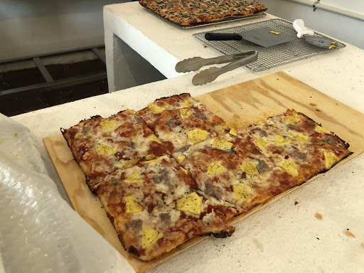 The place has an open window with 2 seats and 2 tables on the street with no chairs. 2 people sitting on the chairs and 2 people sitting on the curb. The guy told me that because it’s “Artisanal” it will take “37” minutes to make a whole pizza. It should take 10-15 minutes for a pizza this thin to cook, less if it were a wood burning oven. So for four slices it was $200 pesos. Not impressed. A whole pizza cost $300 pesos!! The guy also told me that I can scan the QR code and WhatsApp to order a pizza and I can pick it up. Not true, there’s a phone number, I guess could try to WhatsApp but it doesn’t state that on google maps. The menu section only has photos of pizza slices with lots of mozzarella cheese, my slices hardly had any cheese. Sorry but this is my observation of the place. It looked clean the guy spoke English even though I tried to speak Spanish. I couldn’t see the other person baking the pizza because they had 2 customers sitting in front of the window. I really want to be positive about this place but I don’t see any reason to lie. I see that they have positive reviews but I love pizza and I can bake my own pizza and yes the crust is light but I don’t taste sourdough I taste lots of salt. It is better than los muertos...