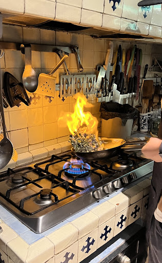 The kitchen where we cooked was in the most exquisite old building owned by an artist whose work was displayed throughout. It was a magical place and the kitchen with its old tile and soaring ceilings was dreamy.