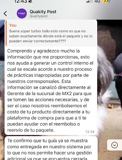 Read moreLamentablemente es verdad que se roban los paquetes en Quality post, la última fue que como se manejan y los supervisores tienen empatía con los mensajeros y bisnes los encubren, compré algo a uno de mis hijos un regalo para un niño lo remarcó y lo que hacen por qué no tienen filtros ni candados y pueden hacer lo que les de en gana inventan que ya visitaron o que a final ya lo entregaron pero no cuentan con que uno tiene cámaras y tiene la evidencia contundente de que no entregan o de que ni siquiera visitan, yo investigue y fuí directamente a su bodega en granjas en la CDMX y los enfrente con toda la evidencia en mano y los vídeos de las horas y días de su supuesta visita y hable directamente con quién se dijo supervisor encargado negando todo defendiendo a su personal pero era evidente que todos estaban coludidos ya que en su vestimenta tenis ropa extras como audífonos joyas incluso tatuajes bastante elaborados no cuadraba que ganarán tanto en solo ser logística, pues a final de cuentas mi patada de ahogado ya que negaron todo fue darles en el orgullo a lo que les dije ojalá se repartan bien los botines que se roban y valga la pena para todos amigó te regalo el paquete de mi hijo está padre te va gustar es más si no sabes qué es pidelo te lo regalo e increíble mente funcionó a los 2 dias recibió mi esposa a un mensajero súper encabronado con el paquete abierto entregando el regalo para mí hijo. Que necesidad de tener que hacer un circo para lograr una entrega y es cierto me dijo el supervisor que te preocupas te lo reembolsan a lo que yo le dije pues no es de lo que se trata de robar al vendedor o a la aplicación o al cliente el echo es que uno desea y por eso compra el objeto no para contribuir con tu mafia perdón por la letanía pero fue la experiencia lo que sucedió, ojalá mejoren filtros y comprobación de...