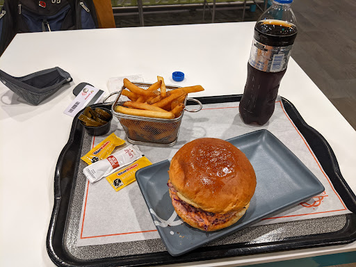 Read morenice looking grocery and more store; although i went here to eat in the cafeteria/food court/eatery area. some places open i believe as early as 7? most 12-9pm. some of the menu items look pretty good and i'll likely be back to try some more. i went here to try the burger. it is punching above its weight class, as i've had many burgers for more money that were not nearly as satisfying. i had the texas burger and fries. i think it will be challenging to find a burger fries combo at this price point...