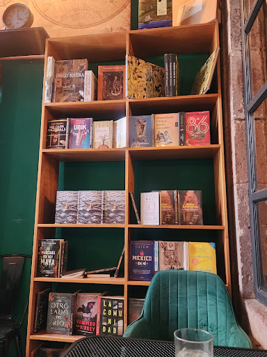 Read moreUn lugar muy bien ubicado en el centro histórico de la ciudad Es un lugar semi abierto lo que hace que ahora en invierno sea algo fresco, desconozco en verano o con sol como es que sea el lugar ya que fui temprano. El servicio amable pero solo con menú digital a veces se pierde esa magia de olvidarnos de los celulares. La carta tiene variedad de alimentos y bebidas tanto para desayuno y más. Pero creo que le faltan pasteles y panadería, o al menos cuando yo fui solo encontré galleta y eso porque pregunté porque no están eso en el menú. Los alimentos y las bebidas cuentan con un buen sabor pero creo que los precios son algo elevados con relación precio y calidad, al menos así lo considero yo, los hoy cakes la verdad es que no eran la gran cosa y la Focacca esperaba más sabor en el pan. Me hubiera gustado que el mesero me hubiera explicado cómo era que funcionaba la dinámica de la parte de librería. Si la gente considera ir a leer y estar un tiempo más largo consideré que los asientos no son tan cómodos para...