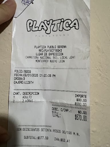 Quiero expresar la mala experiencia que vivimos mi amiga y yo después de la fiesta de nuestras hijas en Playtika Pueblo Serena. La fiesta tenía un horario de 4:30 p.m. a 7:30 p.m. y, al terminar, seguimos las instrucciones de retirar toda la decoración, los regalos, etc., para dejar el salón listo para la limpieza. Sin embargo, después de que nos quedamos para negociar un paquete fotográfico que no habíamos solicitado, al bajar, nos multaron con $1,200 por habernos excedido en el tiempo permitido. Los empleados vieron que estábamos por irnos pero nos detuvimos por el tema de las fotos y no tuvieron la cortesia de avisaron de que el contrsto estipulaba que nos podían multar por la demora. Expusimos nuestra inconformidad con la situación, pero nos respondieron de manera evasiva, y el gerente incluso alzó la voz cuando ya estábamos muy molestas por el abuso.