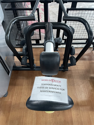 Read moreEl gimnasio presenta una notable falta de mantenimiento y no se perciben esfuerzos por mejorar. No refleja el nivel esperado de un establecimiento de la cadena World Gym. Desde su apertura, he notado que el ~80-90% de los equipos fueron introducidos usados, lo cual da la impresión de que esta sucursal es donde se envían los aparatos desechados de otras sedes. Aproximadamente el 60-70% de los equipos presentan algún tipo de desbalance, y más de la mitad de las caminadoras no funcionan correctamente. Algunos aparatos están clausurados debido a fallos y pueden pasar sin exagerar hasta 2-3 meses sin ser reparados, y cuando lo son, el trabajo es de calidad deficiente.