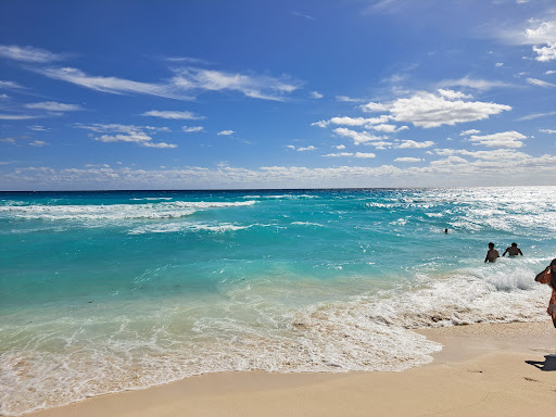 Read moreEl color azul turquesa intenso que tiene el mar es grandioso, escuchaba y leía comentarios acerca del color del agua del caribe, pero hasta que lo vives es cuando dimensionas la realidad y que no es exageración. Yo estuve en la parte sur de esta playa justo frente a los hoteles Flamingo y estaba súper limpia, con vigilancia en toda hora del día y madrugada. Arena blanca como talco muy fino y un paisaje difícil de superar. Yo estuve hospedado en la zona hotelera justo frente a esta playa, pero hay acceso público por la playa Chacmool y una vez dentro ya puedes recorrer hacia el sur y te encontrarás con esta playa que está muy bien cuidada y limpia por acción de los hoteles, pero lo importante es que se puede disfrutar sin...