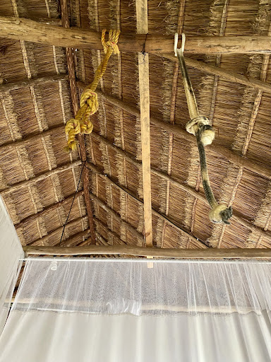 THE MASSAGE: I had the 1h 30min Mayan massage. My masseuse Carolina was able to locate and relieve several stressed and knotted areas. She also used some ropes hanging from the beams for support as she applied foot pressure to my back and legs (see photo).