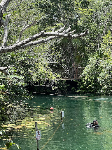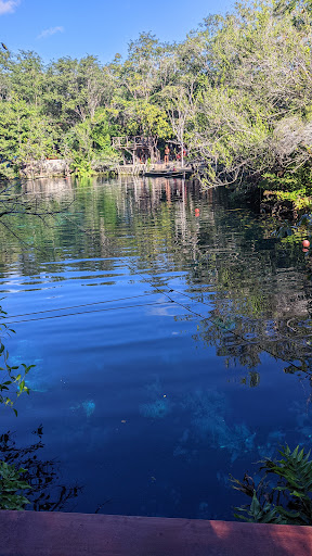 Read moreSuch an awesome cenote! We ended up spending the whole day here. 300mxn/person is worth it for this lovely gem. The crowd is really manageable, specially if it spreads out around the lake. There are toilets, cute tables where you can have your snack, a beautiful wooden walkway around the lake, a 3m jumping platform, wooden chairs where you can read and sunbathe. The cenote itself is just full of fish and smaller turtles. The water is 7m deep, super clean, and wonderful in the daylight. There are a lot of divers (at some point more than the swimmers), but they don't bother anybody. You can buy some stuff here like snacks and coconuts and there is also a lunch booth, but it didn't seem to be operating. The staff is super nice too. Really...