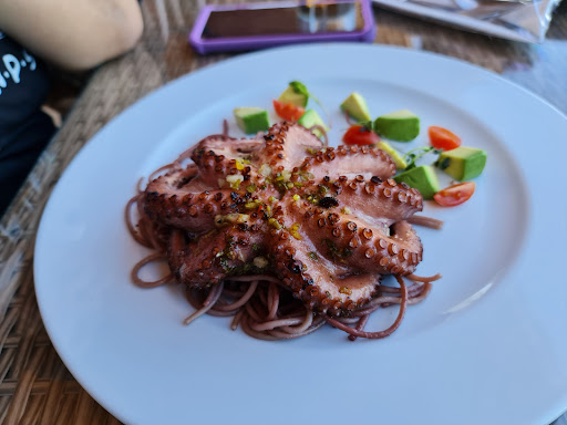 Aparte pedimos botellas de vino, una tinto y otra, blanco. Muy rico, el blanco en el punto frío delicioso. Ellas pidieron postre y estuvo grande, comieron todas (6 personas). Yo pedí carajillo y me encantó la experiencia, lo agitaron en la mesa, el sabor estuvo rico, se sentía el café, dulce (estuvo bien pero prefiero no tan dulce) y alcohol, perfecto en la copa adecuada, sobre todo elegante porque podría ser en un vaso de whisky, pero en copa es más elegante y coqueto.