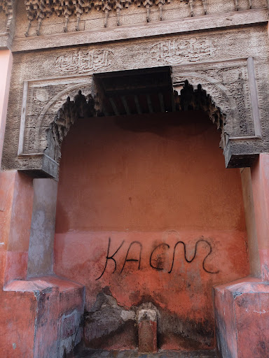 Read moreNiestety, fontanna jest w generalnym remoncie i niewiele można zobaczyć. Jest to ścienna fontanna znajdująca się w pobliżu meczetu Alego ibn Jusufa. Fontanna została oddana do użytku na przełomie XVI i XVII wieku. Wodę dostarczano do niej podziemnymi korytarzami, które służyły także meczetom i pałacom. Nazwa fontanny oznacza w marokańskim arabskim: pij i podziwiaj. Konstrukcja fontanny wraz z markizą wyrzeźbioną z cedru to prawdziwe dzieło sztuki. Dolna część fontanny, na poziomie gruntu jest gładka- nie zachowały się na niej żadne dekoracje. Górną część osłania wspaniały baldachim z precyzyjnie rzeźbionego drewna w...
