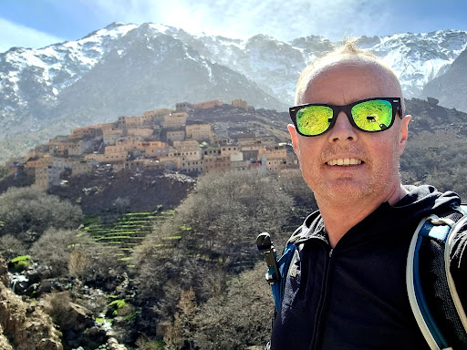 Day 1 - Mustapha organised a taxi (all included) from Marrakech @ 466m elevation and travelled to Imllil @1800m. From here a small team of like minded trekkers (John, Donatas, Victor) were led zigzagging through numerous valleys with Berber villages by our guide Brahim absorbing the culture and views.